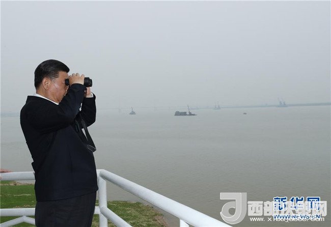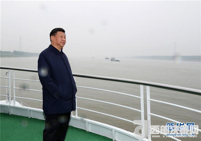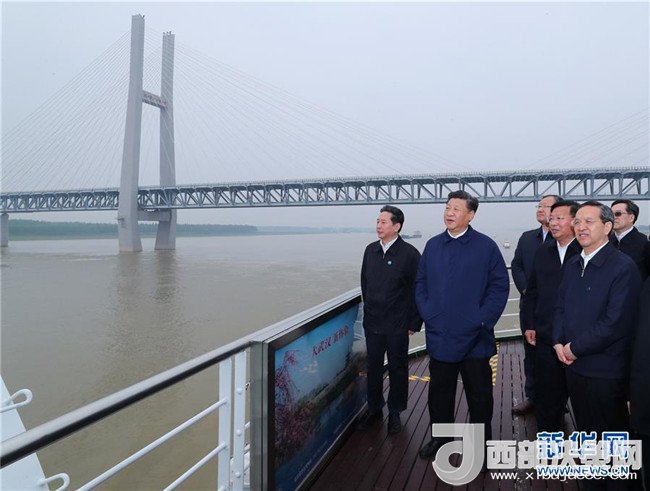 4月26日下午,中共中央總書記、國家主席、中央軍委主席習(xí)近平在武漢主持召開深入推動(dòng)長江經(jīng)濟(jì)帶發(fā)展座談會(huì)并發(fā)表重要講話。這是座談會(huì)前,習(xí)近平于25日上午乘船沿江察看兩岸生態(tài)環(huán)境和發(fā)展建設(shè)情況。新華社記者 謝環(huán)馳 攝