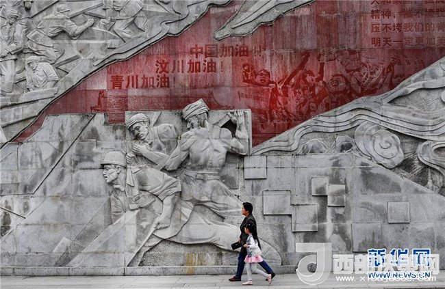 4月26日,市民從感恩奮進(jìn)墻前走過。感恩奮進(jìn)墻是花崗巖浮雕墻,長230米,高12米,再現(xiàn)了青川的風(fēng)土人情、歷史文化和眾志成城、自強(qiáng)不息的抗震救災(zāi)精神、地震災(zāi)后重建和生態(tài)青川的壯美畫卷。新華社記者陶明攝