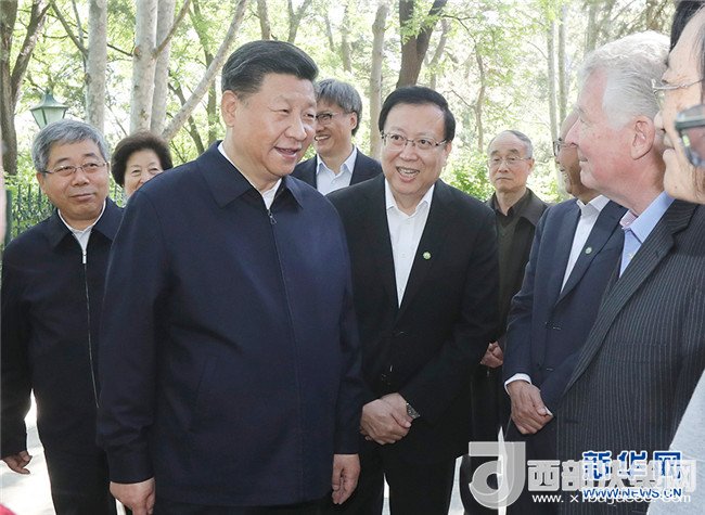 5月2日,中共中央總書(shū)記、國(guó)家主席、中央軍委主席習(xí)近平來(lái)到北京大學(xué)考察。這是習(xí)近平在北京大學(xué)臨湖軒北側(cè)的小庭院看望部分資深教授和中青年教師代表,并同他們親切交談。新華社發(fā)(盛佳鵬攝)