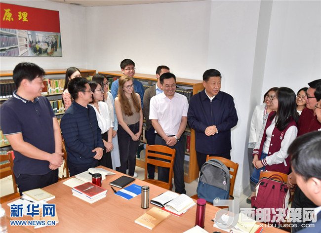隨后,習(xí)近平走進(jìn)國(guó)際馬克思主義文獻(xiàn)中心,察看館藏馬克思主義典籍,詢問(wèn)“馬藏工程”進(jìn)展情況,稱贊他們的工作非常有意義。閱覽室里,一些中外學(xué)生正在就“解讀新時(shí)代”進(jìn)行座談交流。習(xí)近平走到他們中間,認(rèn)真傾聽(tīng)討論,并同大家互動(dòng)交流??倳?shū)記問(wèn)大家為什么選擇馬克思主義專業(yè)、學(xué)習(xí)這個(gè)專業(yè)有什么體會(huì),同學(xué)們興奮地一一回答。同學(xué)們問(wèn)總書(shū)記“您是一個(gè)堅(jiān)定的馬克思主義者,您學(xué)習(xí)馬克思主義有什么好的方法”,總書(shū)記熱情同大家分享了自己的學(xué)習(xí)經(jīng)驗(yàn)。他對(duì)在場(chǎng)的外國(guó)留學(xué)生說(shuō),要了解中國(guó),就要了解中國(guó)的歷史、文化、人文思想和發(fā)展階段,特別是要了解當(dāng)代中國(guó)的馬克思主義。習(xí)近平強(qiáng)調(diào),北京大學(xué)是中國(guó)最早傳播和研究馬克思主義的地方,為馬克思主義在中國(guó)的傳播和中國(guó)共產(chǎn)黨的成立作出了重要貢獻(xiàn)。今年是馬克思誕辰200周年,也是《共產(chǎn)黨宣言》誕生170周年。我們對(duì)馬克思和《共產(chǎn)黨宣言》的最好紀(jì)念,就是把黨的十九大精神和新時(shí)代中國(guó)特色社會(huì)主義思想這一當(dāng)代中國(guó)馬克思主義研究好、宣傳好、貫徹好。他勉勵(lì)大家緊密聯(lián)系世情國(guó)情黨情的變化,認(rèn)真開(kāi)展新時(shí)代中國(guó)特色社會(huì)主義思想研究,拿出更多有分量有說(shuō)服力的研究成果。