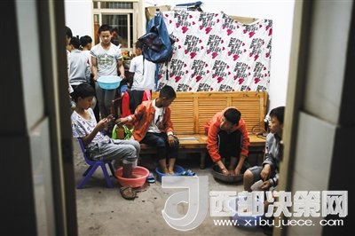 睡覺前,因為寢室沒有熱水,球隊里的小球員來到馬順洗的房間里洗腳。