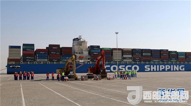 這是2017年11月5日,在阿拉伯聯(lián)合酋長(zhǎng)國阿布扎比,中遠(yuǎn)海運(yùn)港口有限公司舉行中遠(yuǎn)海運(yùn)港口阿布扎比碼頭正式動(dòng)工暨場(chǎng)站租賃簽約儀式,標(biāo)志著中國和阿聯(lián)酋“一帶一路”項(xiàng)目建設(shè)取得新進(jìn)展。新華社記者蘇小坡 攝
