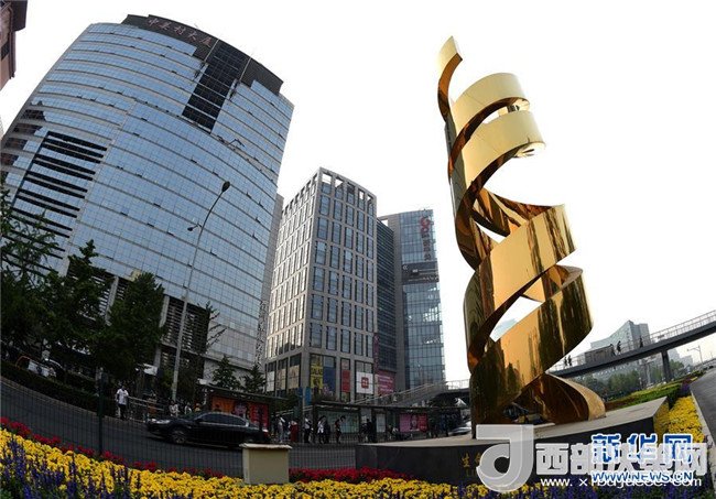 位于中關村大街、題為《生命》的雕塑(2018年5月14日攝)。
