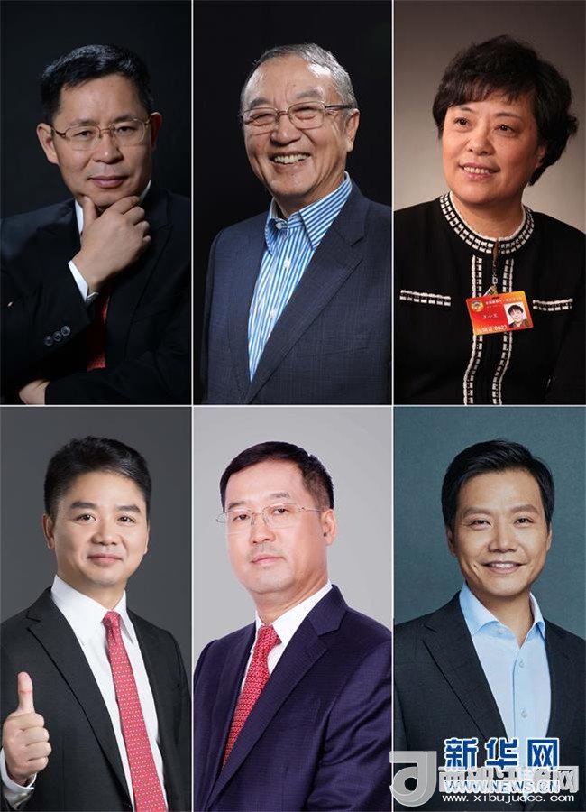 拼版照片:(上排由左至右)用友網絡董事長兼CEO王文京,聯想控股董事長、聯想集團創(chuàng)始人柳傳志,時代集團公司總裁王小蘭;(下排由左至右)京東集團董事局主席兼CEO劉強東,利亞德創(chuàng)始人李軍,小米科技董事長兼CEO雷軍。新華社發(fā)