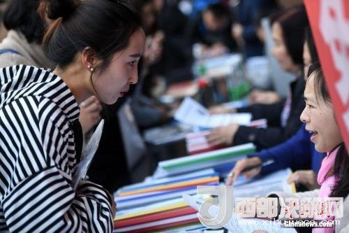 資料圖:招聘會現(xiàn)場在洽談的雙方。中新社記者 李進(jìn)紅 攝