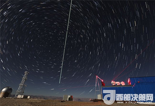 在西藏阿里觀測站,“墨子號”量子科學實驗衛(wèi)星過境,科研人員在做實驗(2016年12月10日攝,合成照片)。新華社記者 金立旺 攝