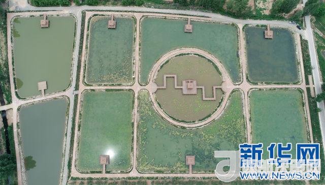 這是黃龍縣石堡鎮(zhèn)梁家河村生態(tài)魚(yú)塘(6月1日無(wú)人機(jī)拍攝)。