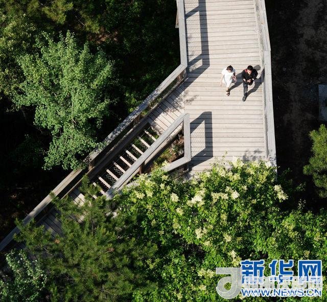 5月31日,游客在黃龍縣瓦子街鎮(zhèn)“樹(shù)頂漫步”景區(qū)內(nèi)游玩。新華社記者邵瑞攝