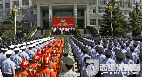 天水市委常委、政法委書記蒲軍,市人大常委會副主任王曉琴,市政協(xié)副主席郭明興,市人民檢察院檢察長張發(fā)魁,市委政法委常務副書記陳明達,市司法局局長彭德祥,市公安局常務副局長曹小明等領導出席大會。會議由副市長、市公安局局長馬瑛主持。全市公安機關各警種460余人列隊參加誓師大會。