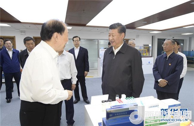 6月12日至14日,中共中央總書記、國家主席、中央軍委主席習近平在山東考察。這是14日上午,習近平在濟南考察浪潮集團高端容錯計算機生產基地。新華社記者 李學仁 攝