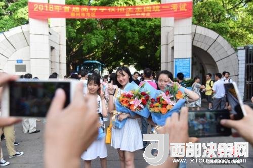 資料圖:2018年高考結束,家長為剛剛走出考場的孩子拍照留念。 王以照 攝