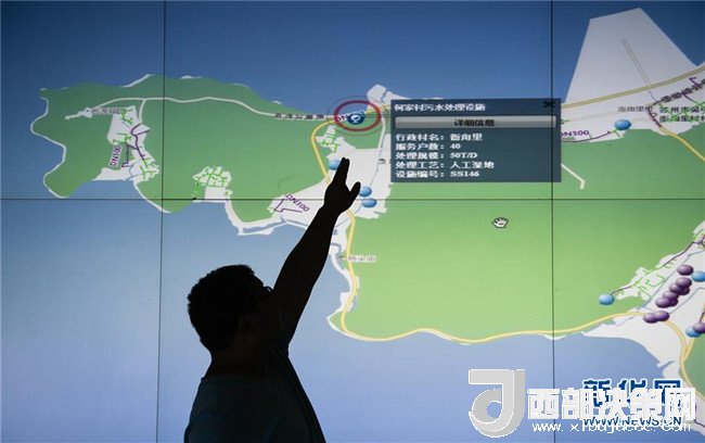 7月4日,蘇州市吳中區(qū)金庭鎮(zhèn)污水處理廠工作人員展示有實(shí)時(shí)監(jiān)控監(jiān)測(cè)、在線巡檢等功能的農(nóng)村獨(dú)立處理設(shè)施信息化管理平臺(tái)。新華社記者李響攝