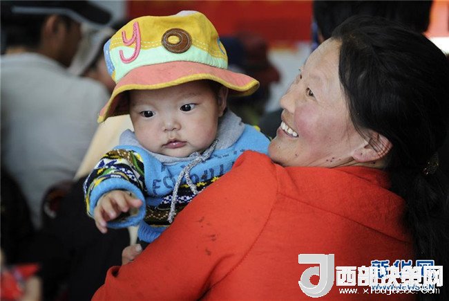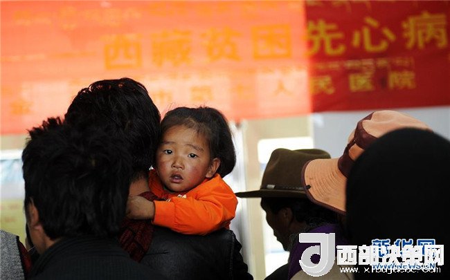 7月11日,在西藏那曲,家長帶著先心病患兒接受檢查。