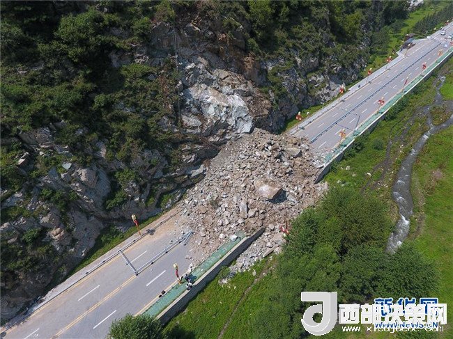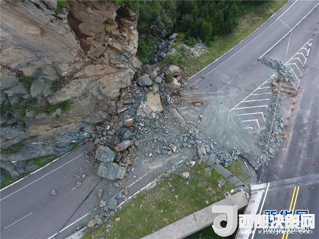 這是五臺山景區(qū)大甘河橋一側(cè)的山體崩塌現(xiàn)場(7月21日攝)。受降雨影響,山西五臺山景區(qū)于7月19日和20日發(fā)生兩起山體崩塌地質(zhì)災(zāi)害,沒有造成人員傷亡和車輛損失。新華社發(fā)(楊晨光攝)
