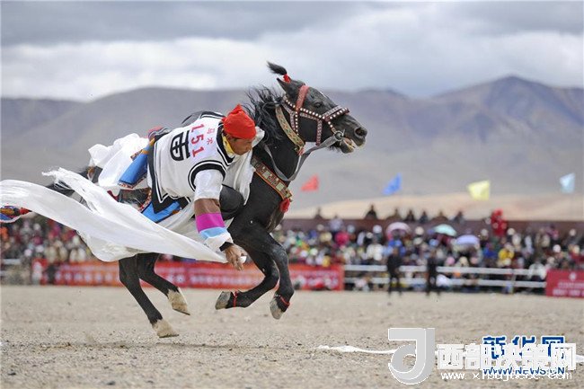 當(dāng)日,西藏阿里地區(qū)在獅泉河鎮(zhèn)舉行賽馬競技大賽,比賽項(xiàng)目有騎馬拾哈達(dá)、撿茶磚、騎馬射箭、馬術(shù)表演等,共有150名農(nóng)牧民選手參加比賽,吸引了2萬余名觀眾前來觀看。新華社記者張汝鋒攝