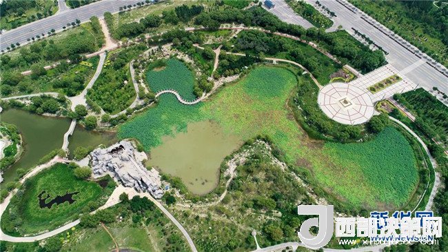 在寧夏石嘴山大武口發(fā)電廠第二排灰場上建起的石嘴山人民公園(7月31日無人機(jī)拍攝)。 新華社記者 王鵬 攝
