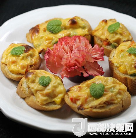 1.面包最好選用法棍面包等歐式面包,斜切成大片;提前將青豆、玉米和紅蘿卜焯水;