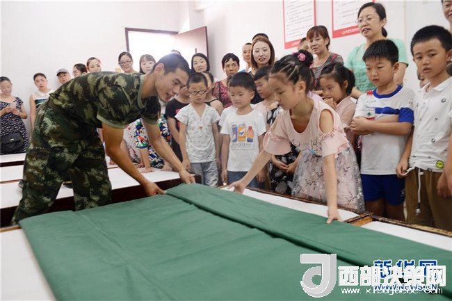 8月2日,湖北省宜昌市秭歸縣實驗小學的學生和家長在縣消防中隊體驗整理內務。 新華社發(fā)(王輝富 攝)