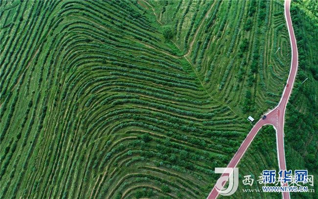 寧夏固原市涇源縣城郊的健身步道(7月19日攝)。 新華社記者 王鵬 攝