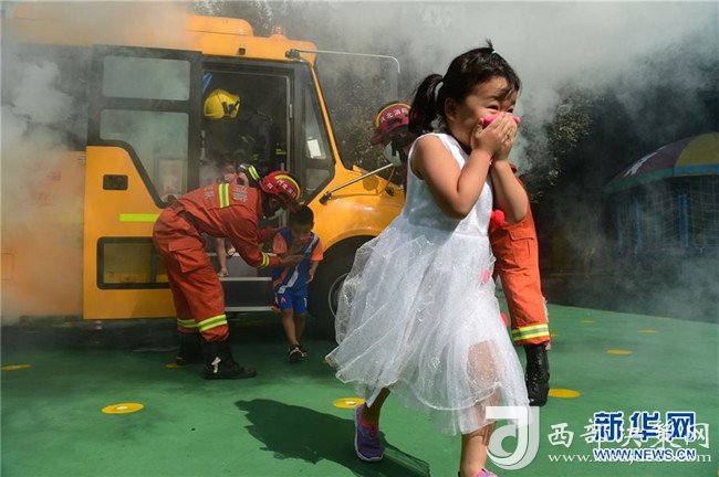新學(xué)期開(kāi)學(xué)在即,河北省滄州市新華區(qū)在幼兒園、中小學(xué)舉行消防應(yīng)急逃生演練,重點(diǎn)針對(duì)校車安全、突發(fā)火情逃生等環(huán)節(jié)進(jìn)行模擬演練,提高學(xué)生的防范意識(shí)與應(yīng)急避險(xiǎn)能力。 新華社發(fā)(傅新春 攝)