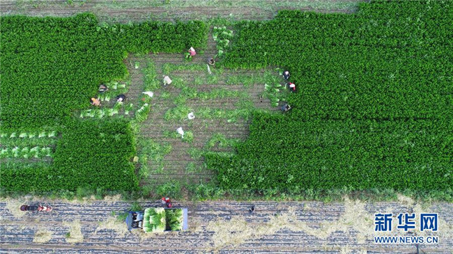 農(nóng)民在寧夏固原市西吉縣興隆鎮(zhèn)收割芹菜(8月9日無(wú)人機(jī)航拍)。地處西北內(nèi)陸的寧夏,既有高山大漠的雄渾,又有“塞上江南”的溫婉,自然造化之美自古入詩(shī)入畫。自治區(qū)成立60年里,尤其是黨的十八大以來(lái),這片熱土上的人民用勤勞和智慧,發(fā)展特色農(nóng)業(yè)、建設(shè)美麗鄉(xiāng)村、樹立文明鄉(xiāng)風(fēng),繪就一幅全新、壯美的鄉(xiāng)村振興新畫卷。新華社記者王鵬攝
