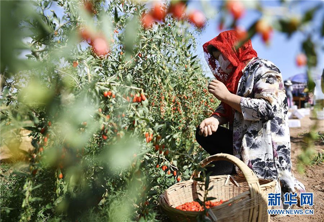 農(nóng)民在寧夏吳忠市同心縣潤(rùn)德莊園枸杞基地采摘枸杞(6月22日攝)。地處西北內(nèi)陸的寧夏,既有高山大漠的雄渾,又有“塞上江南”的溫婉,自然造化之美自古入詩(shī)入畫。自治區(qū)成立60年里,尤其是黨的十八大以來(lái),這片熱土上的人民用勤勞和智慧,發(fā)展特色農(nóng)業(yè)、建設(shè)美麗鄉(xiāng)村、樹立文明鄉(xiāng)風(fēng),繪就一幅全新、壯美的鄉(xiāng)村振興新畫卷。新華社記者王鵬攝