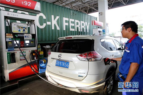 9月3日,江蘇省連云港市一家加油站的工作人員給車輛加油。 當日,國家發(fā)展改革委發(fā)布消息,按照現(xiàn)行成品油價格形成機制,自2018年9月3日24時起,國內(nèi)汽油、柴油價格每噸分別上調(diào)180元和170元。 新華社發(fā)(王春 攝)