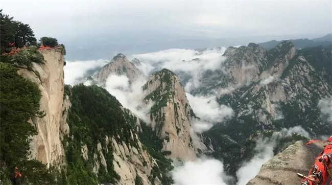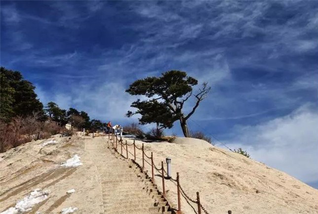 北峰海拔1614米,為華山主峰之一,因位置居北得名。北峰四面懸絕,上冠景云,下通地脈,巍然獨秀,有若云臺,因此又名云臺峰。唐李白《西岳云臺歌送丹丘子》詩曾寫到:“三峰卻立如欲摧,翠崖丹谷高掌。白帝金精運(yùn)元氣,石作蓮花云作臺。”