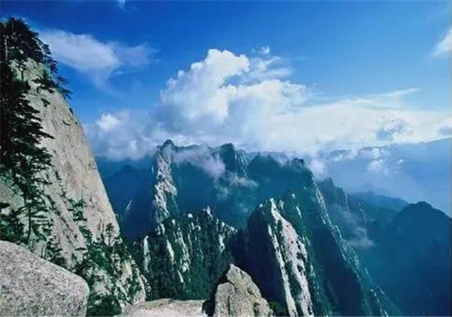 西峰海拔2082.6米,華山主峰之一,因位置居西得名。又因峰巔有巨石形狀好似蓮花瓣,古代文人多稱其為蓮花峰、芙蓉峰。袁宏道在他的《華山》中記述:“石葉上覆而橫裂”;徐霞客《游太華山日記》中也記述:“峰上石聳起,有石片覆其上,如荷花。”李白詩中有“石作蓮花云作臺”句,也當(dāng)指此石。