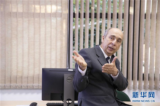8月30日,在巴西圣若澤杜斯坎普斯,中國-巴西空間天氣聯(lián)合實驗室巴方運營負責(zé)人若阿金·科斯塔在介紹實驗室運轉(zhuǎn)情況。 新華社記者 李明 攝