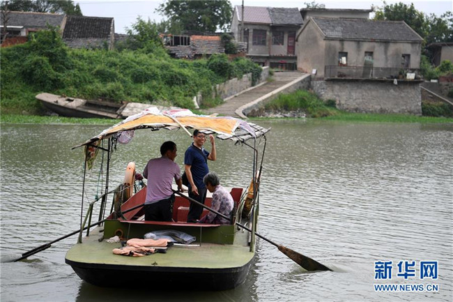 安徽含山縣運(yùn)漕鎮(zhèn)楊謝小學(xué)河北教學(xué)點(diǎn)教師汪開寬(中)在放學(xué)后乘船到島對(duì)面的集市買菜(2017年9月5日攝)。河北教學(xué)點(diǎn)所在的河北自然村四面環(huán)河,島上人口不足100人。30年前,師范學(xué)校畢業(yè)的汪開寬來(lái)到這里,開始了自己的教師生涯。近年來(lái),學(xué)生數(shù)量慢慢減少到個(gè)位數(shù),其他老師陸續(xù)離開,最后只剩下汪開寬一人。然而為了島上的孩子們不用涉險(xiǎn)過(guò)河上學(xué),汪開寬依舊選擇了堅(jiān)守。新華社記者 劉軍喜 攝