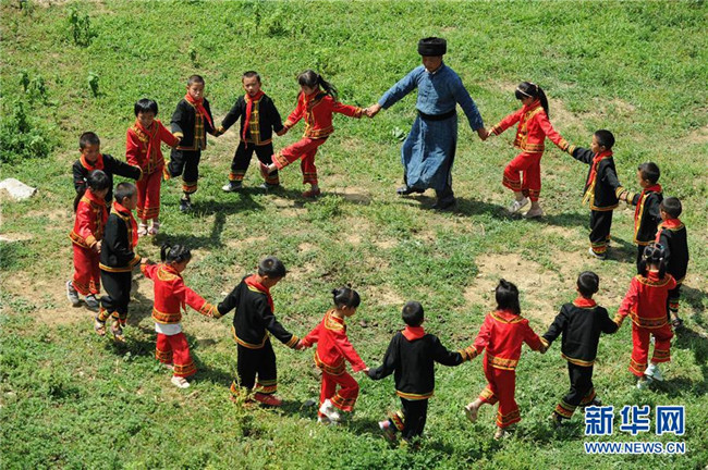 9月5日,貴州畢節(jié)市黔西縣花溪彝族苗族鄉(xiāng)豐坪小學(xué)教師楊朝俊和學(xué)生一起跳民族舞蹈。時(shí)至今日,楊朝俊在當(dāng)?shù)亟虝延?4個(gè)年頭,曾孤身一人守著豐坪小學(xué)兩個(gè)年級(jí)的30余名學(xué)生,照顧他們的學(xué)習(xí)和生活。楊朝俊默默堅(jiān)守的事跡,吸引了一名支教老師前來(lái)“搭班”。今年新學(xué)期開學(xué)時(shí),當(dāng)?shù)亟逃块T又選派了一名年輕的特崗教師來(lái)到學(xué)校,分擔(dān)教學(xué)工作。新華社發(fā)(楊文斌攝)