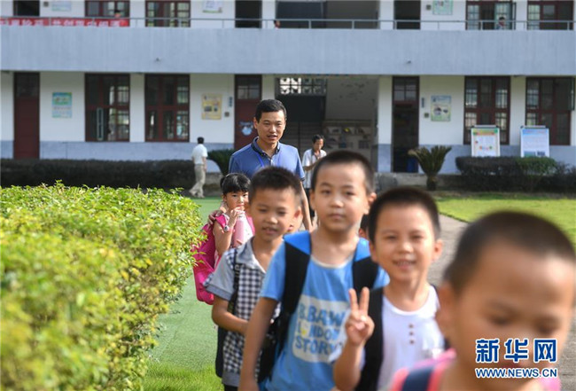 9月6日,福建閩清縣上蓮鄉(xiāng)中心小學(xué)教師張鐘在放學(xué)后送孩子們回家。2006年,“80后”教師張鐘投身鄉(xiāng)村教育事業(yè),主動(dòng)要求到偏遠(yuǎn)教學(xué)點(diǎn)任教。為了能安心工作,他還動(dòng)員妻子和父母都搬到上蓮鄉(xiāng)工作生活,幫他一起照顧?quán)l(xiāng)村學(xué)校里的孩子們。十多年來(lái),張鐘扎根鄉(xiāng)村,堅(jiān)守在教書育人的崗位上。新華社記者 林善傳 攝