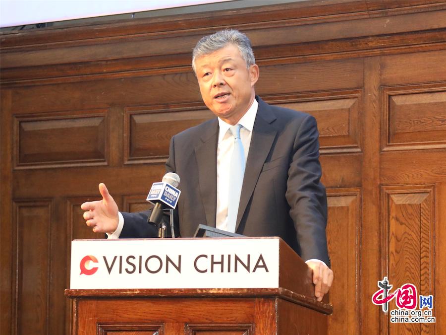 9月13日,中國(guó)日?qǐng)?bào)社以“改革開放再出發(fā):中國(guó)與世界新愿景”為主題在英國(guó)倫敦喬治街1號(hào)舉辦第五期“新時(shí)代大講堂”。中國(guó)駐英國(guó)大使劉曉明致辭。(主辦方供圖)