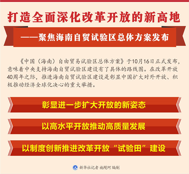 原標(biāo)題:打造全面深化改革開放的新高地——聚焦海南自貿(mào)試驗(yàn)區(qū)總體方案發(fā)布