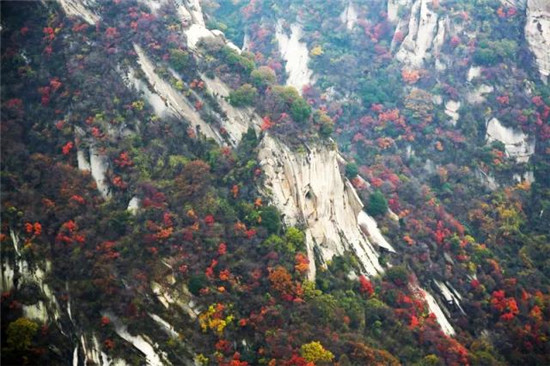當(dāng)秋風(fēng)拂過山巒,華山自上而下流動著豐富而鮮明,生動而絢麗的色彩。