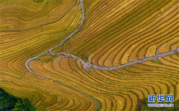 這是10月16日無人機拍攝的龍脊梯田秋色。金秋時節(jié),廣西龍勝各族自治縣龍脊梯田美如畫卷。 新華社記者 黃孝邦 攝