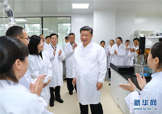 10月22日至25日,中共中央總書(shū)記、國(guó)家主席、中央軍委主席習(xí)近平在廣東考察。這是10月22日下午,習(xí)近平考察珠海橫琴新區(qū)粵澳合作中醫(yī)藥科技產(chǎn)業(yè)園。 新華社記者謝環(huán)馳攝