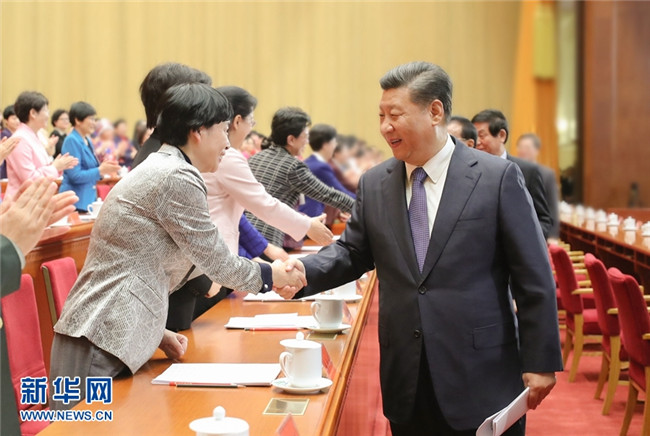 10月30日,中國婦女第十二次全國代表大會(huì)在北京人民大會(huì)堂開幕。這是中共中央總書記、國家主席、中央軍委主席習(xí)近平等同與會(huì)代表親切握手。 新華社記者 鞠鵬 攝