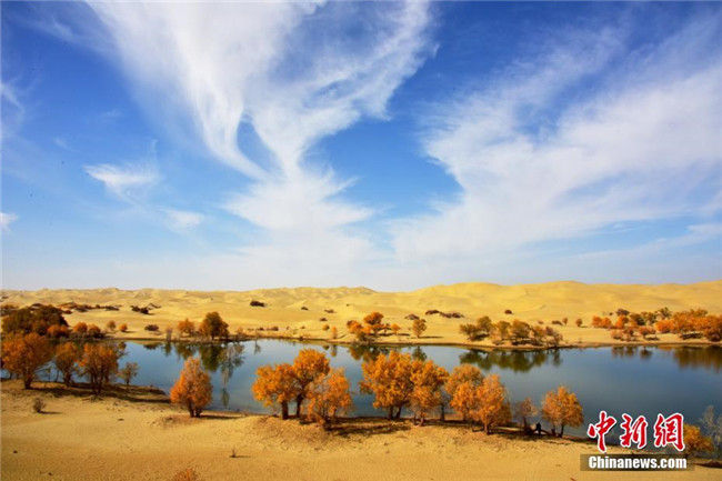 10月底,新疆尉犁縣國家沙漠公園里的羅布湖清澈見底的湖水,與塔克拉瑪干沙漠、天然胡楊渾然一體,讓來自海內(nèi)外的乘船游湖的游客怦然心動,這是還是一片未被開發(fā)的凈土。據(jù)悉,羅布湖1.2萬畝水域面積,湖泊水深7米的優(yōu)良水質(zhì),有著豐富的漁業(yè)資源。該沙漠公園是集休閑度假、羅布人文化體驗、沙漠旅游、生態(tài)宣教為一體的國家級沙漠公園。李飛攝