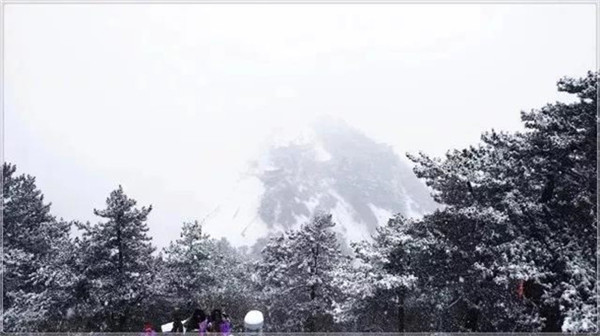 當(dāng)滿山的紅葉還依舊掛在樹枝,露出嬌羞的笑臉時(shí),秋末的華山,已經(jīng)下起了今年的第一場(chǎng)雪。放眼望去,整座山體好像被薄薄的彩衣包裹,若隱若現(xiàn)。