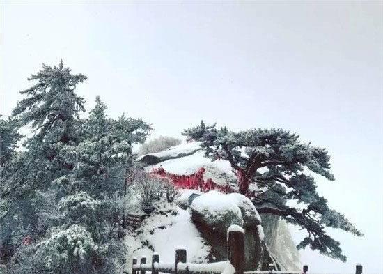 冬季的華山少了夏季的喧鬧,白雪與松檜、陽(yáng)光與山石就是它最美的景象。每年12月至次年3月是華山的雪季,而前兩天華山已經(jīng)提前下過(guò)雪了,整個(gè)山體被白雪覆蓋,樹(shù)木、巖石、道觀上都披上一層厚厚的棉衣。走進(jìn)華山仿佛是走進(jìn)了一個(gè)純白的圣潔之地,白色的花崗巖、白色的雪花、白色的樹(shù)木…… 在華山,白色也是如此的浪漫唯美。