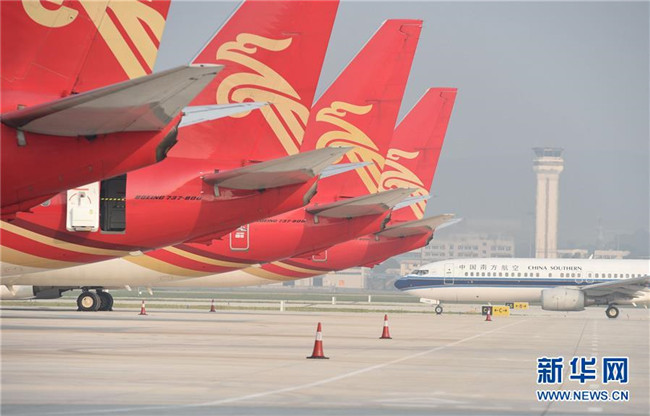 飛機停在廣西南寧吳圩機場(2014年9月25日攝)。