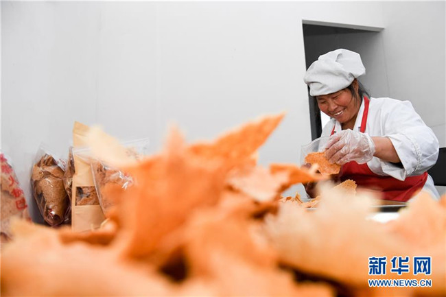 今年49歲的汪明祥和47歲的姚新花是安徽省涇縣黃村鎮(zhèn)沙元村的一對農(nóng)民夫妻。2013年,汪明祥突發(fā)疾病花光了家里的積蓄,并喪失了一定的勞動能力。2014年,汪明祥一家被確定為建檔立卡貧困戶。為了靠自己的雙手實現(xiàn)脫貧,汪明祥和妻子姚新花在家里開始生產(chǎn)手工鍋巴,雖然收入不高,但是經(jīng)濟狀況慢慢好轉(zhuǎn)起來,于2016年順利實現(xiàn)脫貧。 脫貧后的夫妻倆開始琢磨如何進一步發(fā)展自家的手工鍋巴生意。今年,汪明祥和妻子姚新花利用當?shù)胤鲐毿☆~貸款和自籌資金創(chuàng)辦的強源鍋巴廠投產(chǎn)。由于口味地道,價格不高,汪明祥家的鍋巴受到市場的歡迎,平均每天生產(chǎn)鍋巴50余斤,日均銷售額400多元。“不等不靠,甩窮帽,我們夫妻倆靠手藝脫了貧,也有信心實現(xiàn)致富。”汪明祥說。新華社記者 劉軍喜攝