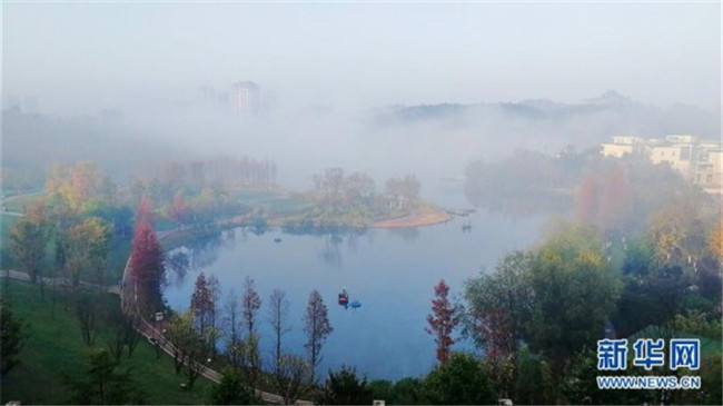 這是11月26日在貴陽(yáng)市觀山湖區(qū)閱山湖公園內(nèi)拍攝的霧景。 新華社記者 劉續(xù) 攝