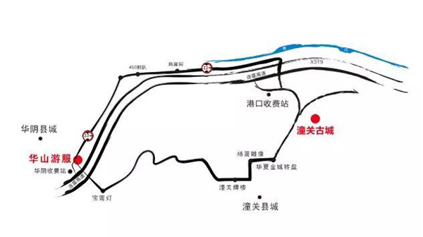 從西安、渭南、運城坐高鐵到華山北,之后在高鐵站東側華陰—潼關站牌處到潼關港口向南200米即到;