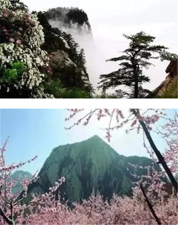 春季的華山,陽(yáng)光照耀下帶些許微冷的山氣,時(shí)常有如煙如霧的霧靄在山嶺間浮動(dòng),色彩繽紛的小花悄然綻放,點(diǎn)綴四處的山坡;