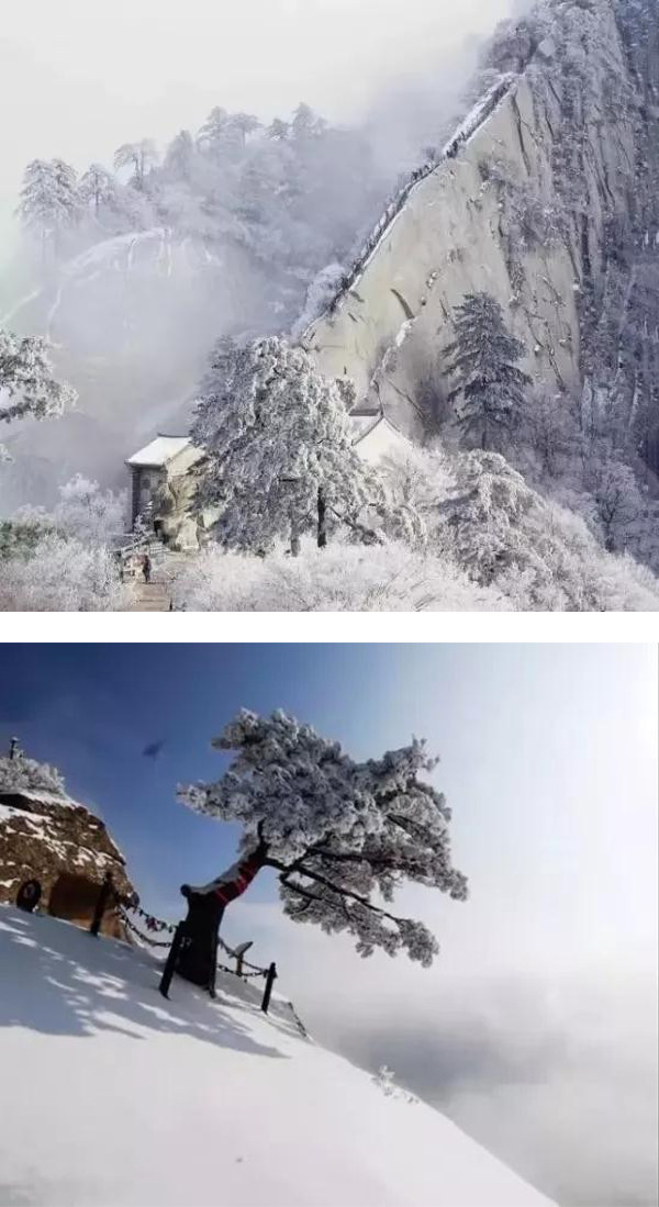 冬季的華山,白雪皚皚,雪松峭壁,遠(yuǎn)山相望,給人以仙境美感;那份寧?kù)o、那份閑適,令人陶醉。