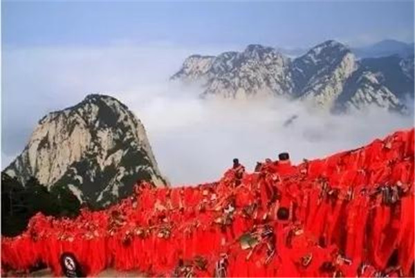 當(dāng)山風(fēng)徐徐吹來(lái),長(zhǎng)長(zhǎng)的紅色絲繩就會(huì)隨風(fēng)輕盈的舞蹈起來(lái),如輕盈的飛鳥,比翼雙飛將愛(ài)情的甜蜜帶到華山的每一個(gè)角落,將愛(ài)情的誓言印刻在每一塊充滿靈性的石頭上。