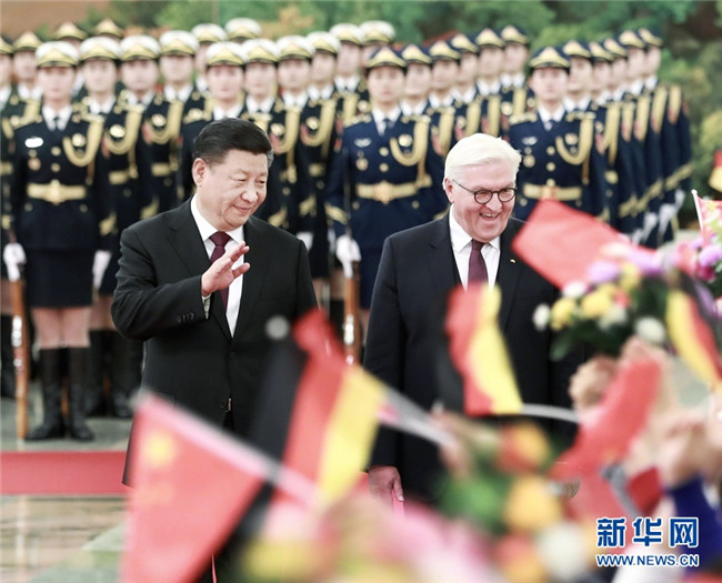國(guó)家主席習(xí)近平10日在人民大會(huì)堂同德國(guó)總統(tǒng)施泰因邁爾舉行會(huì)談。兩國(guó)元首一致同意,加深互信,合作共贏,推動(dòng)中德全方位戰(zhàn)略伙伴關(guān)系繼續(xù)深入發(fā)展,讓中德合作取得更多有利于兩國(guó)和兩國(guó)人民、有利于世界和平與繁榮的成果。